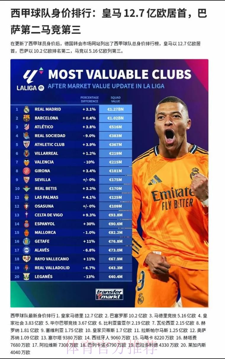 查看更多在当今足坛,衡量一支球队竞争力的不仅是奖杯数量和联赛排名,球队总身价正在成为一面新的“镜子”。这面镜子折射出的,是青训质量、转会眼光、商业运营和战术体系的综合结果。正因如此,当外界看到“西甲球队身价:
